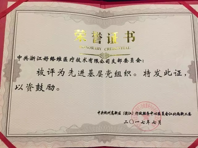 2017年7月28日下午,2017年江北兩新工委“兩優(yōu)一先”表彰大會(huì )開(kāi)幕,高新區(濱江)江北兩新工委書(shū)記周中華、行政服務(wù)中心副主任黃建民等領(lǐng)導出席會(huì )議并作講話(huà)。好絡(luò )維黨支部多年來(lái)秉持全心全意為人民服務(wù)的宗旨,黨務(wù)工作得到了上級黨組織和群眾的一致認可,被評為“先進(jìn)基層黨組織”。