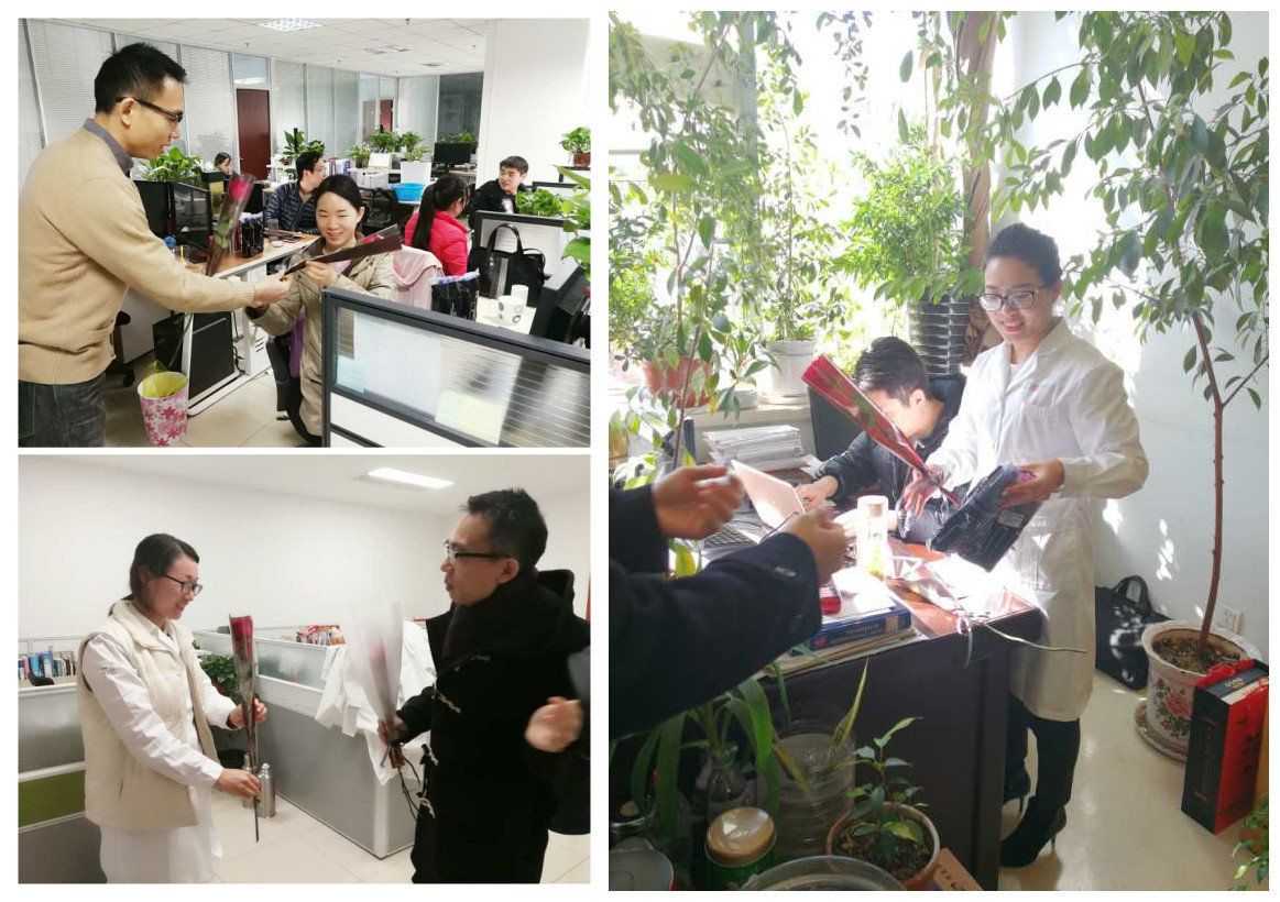 今天一大早,人力資源部門(mén)就準備好了節日的禮物,杭州總部、北京中心、青島中心的好絡(luò )維男團們也早早準備好了向好絡(luò )維女神們 “表白”,為此還引起了一陣小小的騷動(dòng)。原來(lái),公司女神數量有限,男團成員太多,眾好漢經(jīng)過(guò)商議決定采取“抓鬮”選取幸運者,抽到者喜氣洋洋,一朵鮮花、一份禮物,一句祝福,暖的工作中雷厲風(fēng)行的“女漢子”們個(gè)個(gè)嬌羞柔媚,喜笑顏開(kāi)。