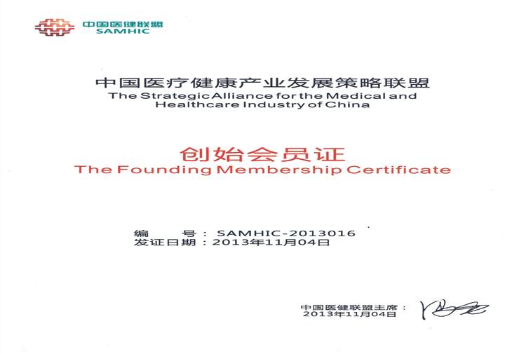 • 中國醫健聯(lián)盟創(chuàng )始會(huì )員證書(shū)