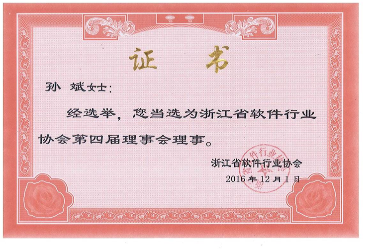• 浙江省軟件行業(yè)協(xié)會(huì )理事會(huì )理事證書(shū)
