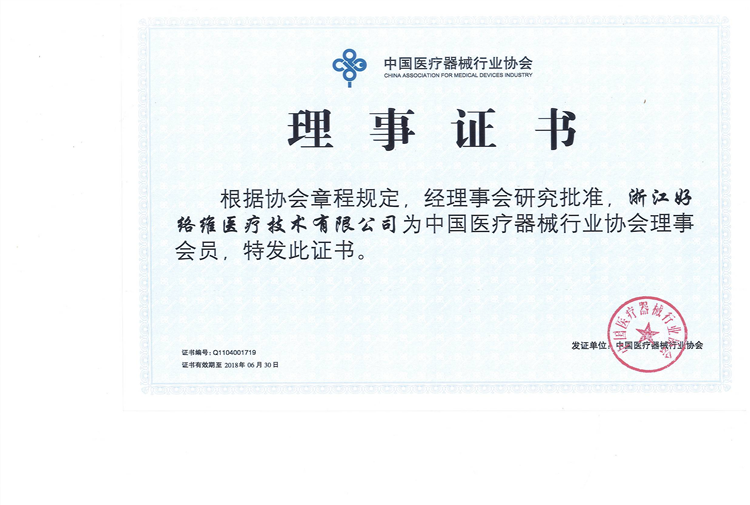 • 中國醫療器械行業(yè)協(xié)會(huì )理事證書(shū)